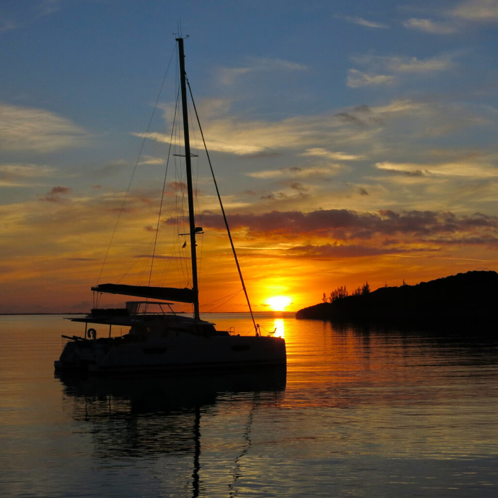One of the many great joys of sailing for me is exploring beautiful places that are hard to reach by land, and hence are unspoiled and more or less unpopulated except perhaps by wildlife. Sunsets over the ocean have a knack of being particularly spectacular too, and the combination of a special location, good company, and a sunset like this one in the Bahamas combine to make wonderful memories.