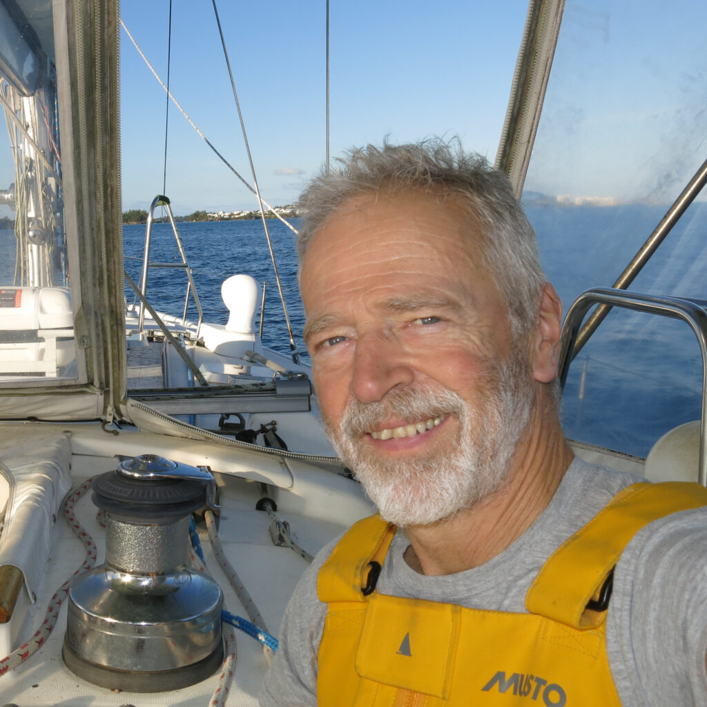 Many north American boat owners enjoy sailing in the Caribbean. Of course, when the hurricane season comes around, it’s time to move to the safety of more northerly latitudes, in fact, most insurance companies insist upon it. Consequently, twice each year, many boats make the trip between north and south. Depending on the speed of the boat this might take a week or two, and that much time with nothing to do but tend to the needs of the boat, eat, sleep, read, and gaze at the stars is not everyone’s idea of entertainment. Because of this, and the need for an experienced and skilled skipper and crew, many owners pay someone else to deliver the boat. Here I’m looking pretty tired as we arrive in St George’s Harbour, Bermuda, for an en-route stop in a 50′ Beneteau. We were running with a ship’s complement of three and I’m tired since we’ve been working a “three on, six off” watch schedule, which means you’re in charge of the boat by yourself for three hours, and then get six hours break in which you eat, sleep, and anything else that needs to be done. That schedule runs continuously until arrival.
